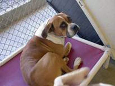 My wonderful animal loving brother was going to adopt Kona but when he got him home, Kona panicked and escaped from the car as he was getting him out and took off. My brother devoted nine long hot days to bringing Kona ice water, food, shelter, and toys in the NC woods where Kona was "camped out" and tried to gain Kona's trust but Kona was too fearful to come to anyone. I remember one evening my brother calling me and saying Kona would still not come to him and as he was getting in his car to leave, due to night falling, he could hear the toy he left him squaking in the woods. This just broke both our hearts. With the expertise guidance of Terrie McCanse of Washington Boxer Rescue throughout the nine days of trying to retrieve Kona, my brother was finally successful in capturing him on the 9th day in a humane animal trap.
