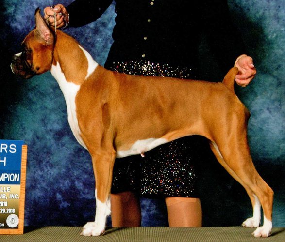 Am/Can Ch. Berlane N Bravo's Hear Me Roar, DOM, CDOM (Fawn) Ch. Berlane's Causin An Uproar, CDX, SOM, CSOM, LOM, CLOM (Fawn) Ch. Bridgewood's BK Kahuna, SOM, CSOM, LOM (Fawn)